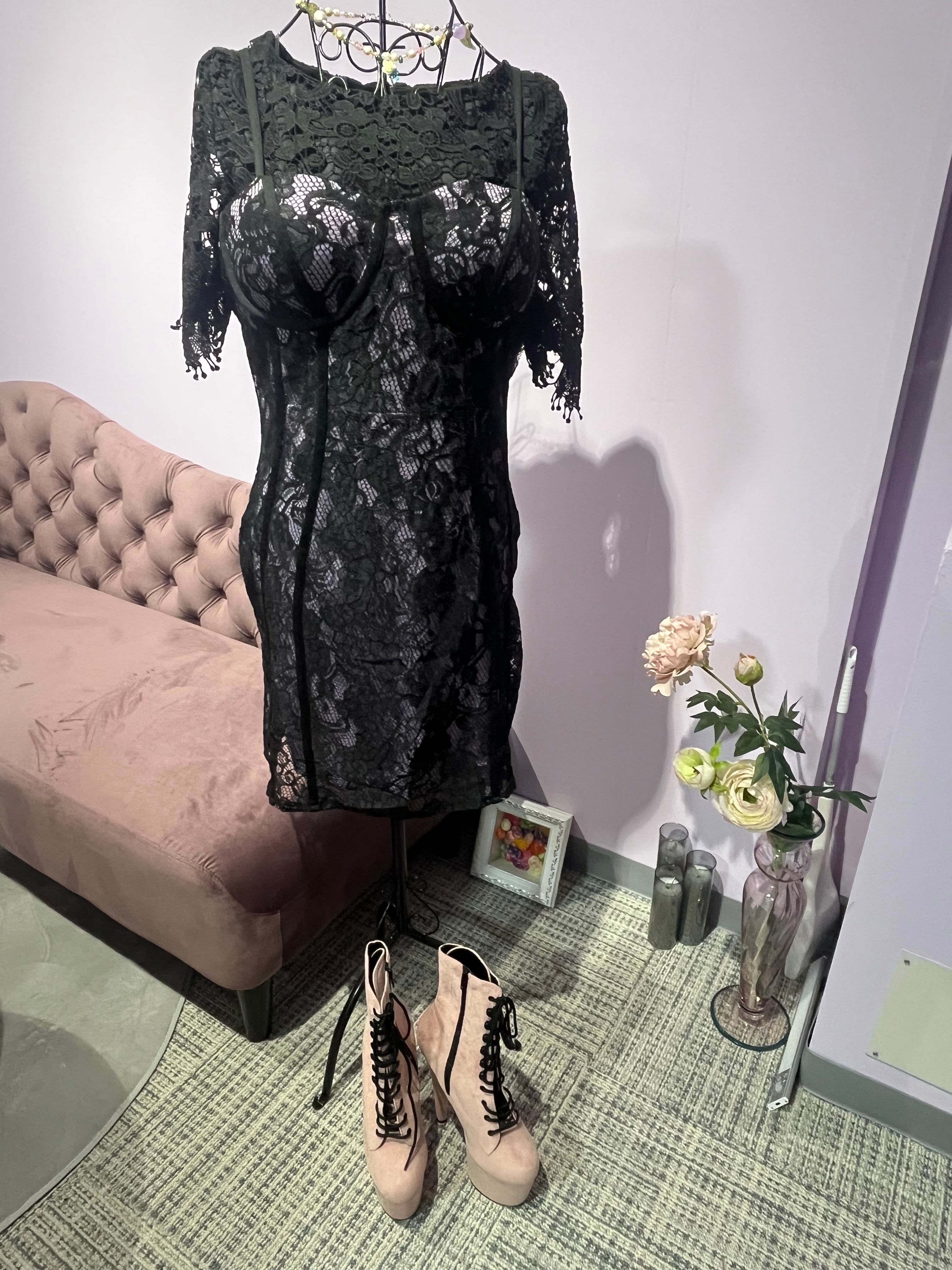 パープル✖️ブラックレース ノースリーブミニワンピース