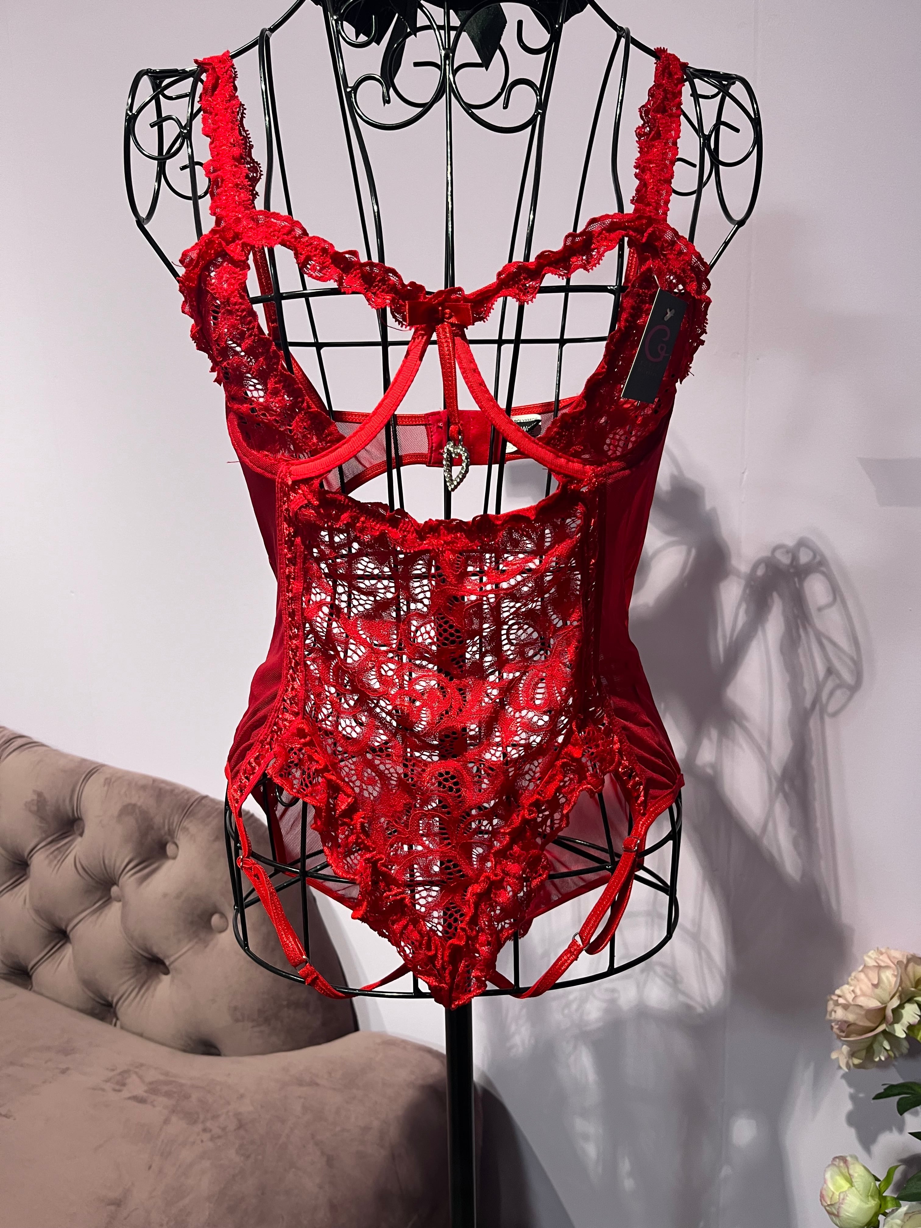 こちらのテディは明るめのややオレンジがかったレッドで、ハートのチャームもついて可愛らしさもあるのですが、大胆に肌を見せるデザインも兼ねておりますので、女性の中にある魅力的な二面性を表現出来ているデザインになっております。