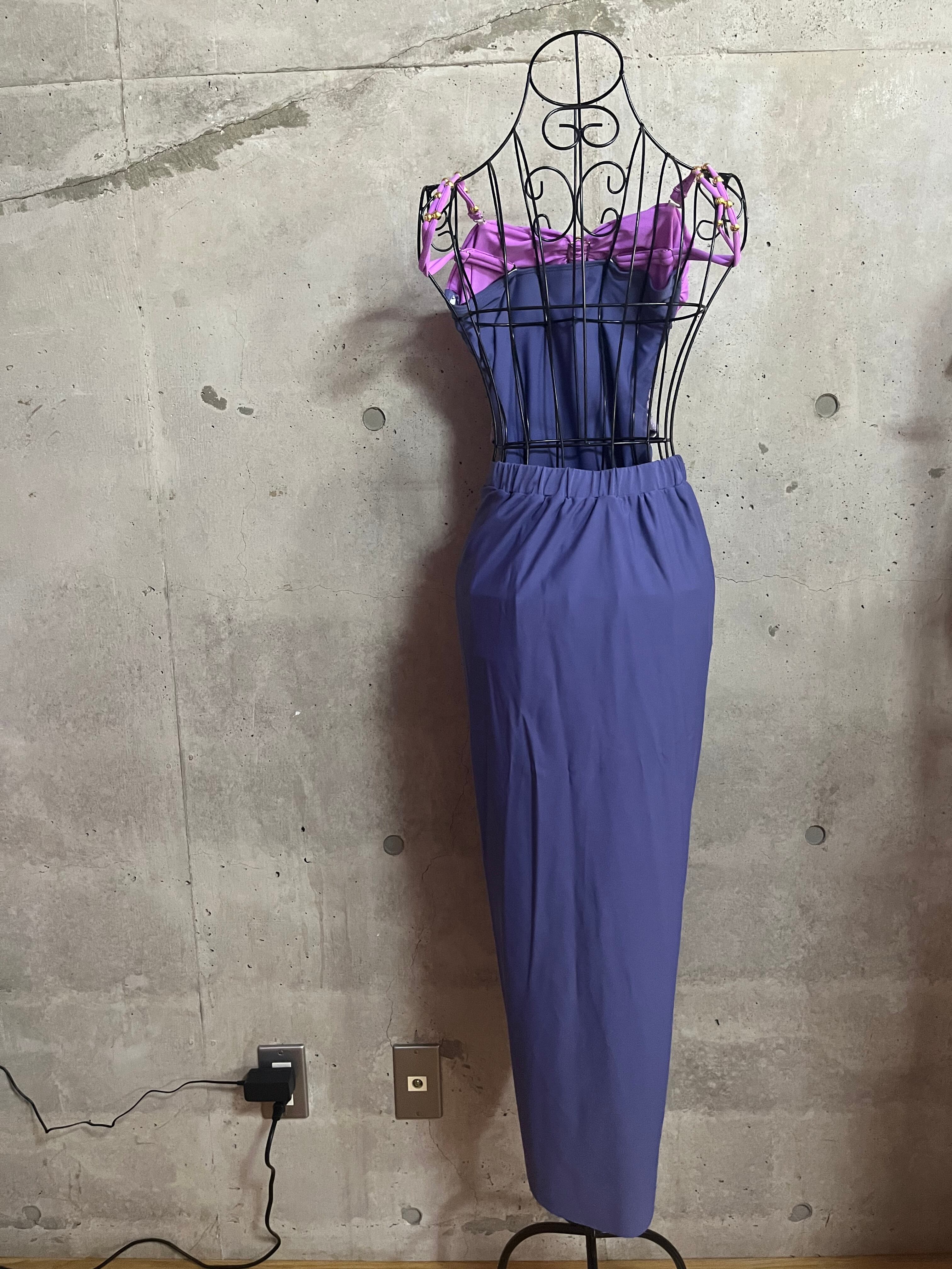 フロント部分の肌見せ、色合い、マーメイドスカート、ととてもフェミニンでセクシーなワンピース水着です
