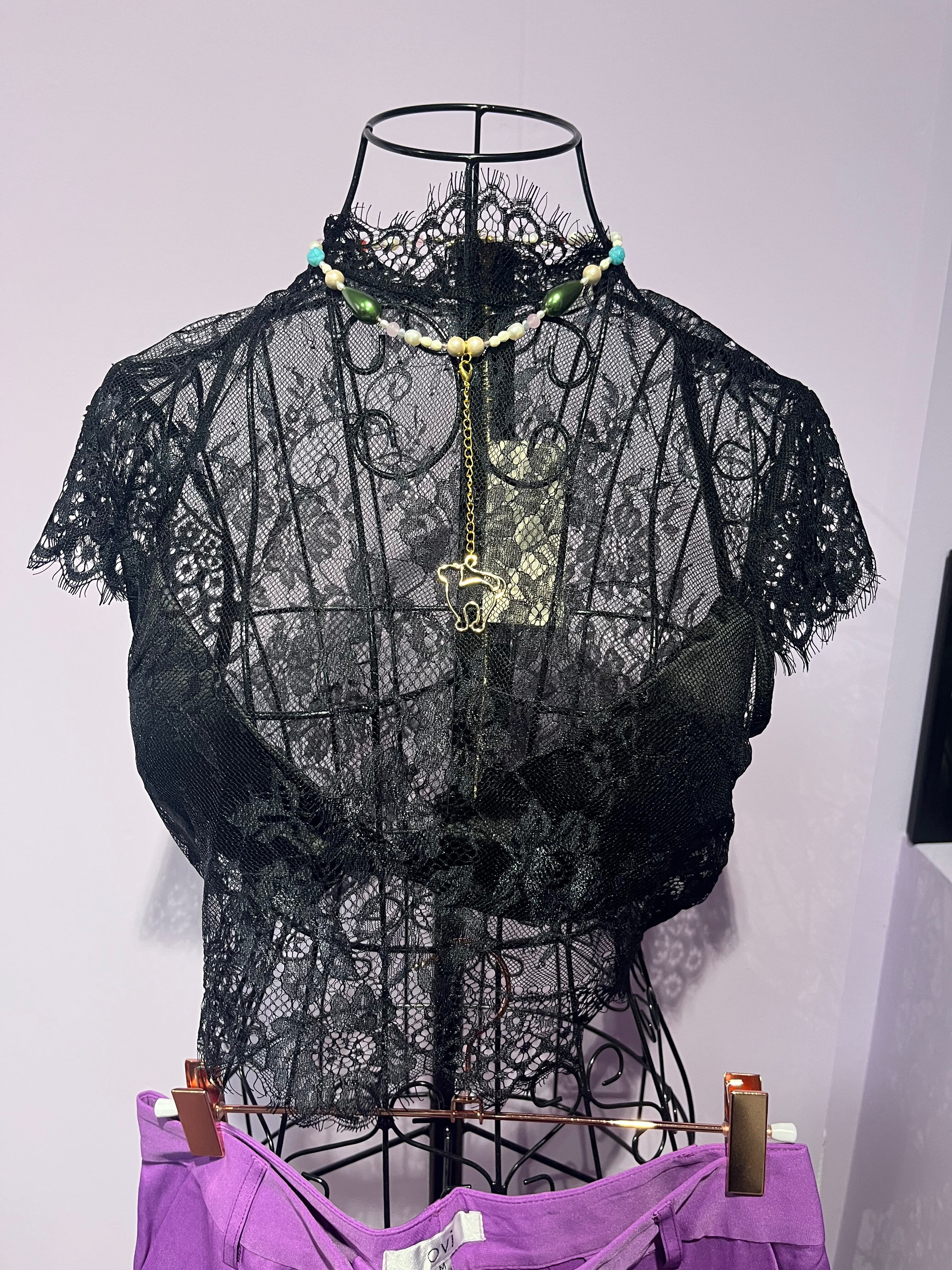 ジャケットの下や、ワンピースの下になどに使いやすい、カップ付きのレーストップスです