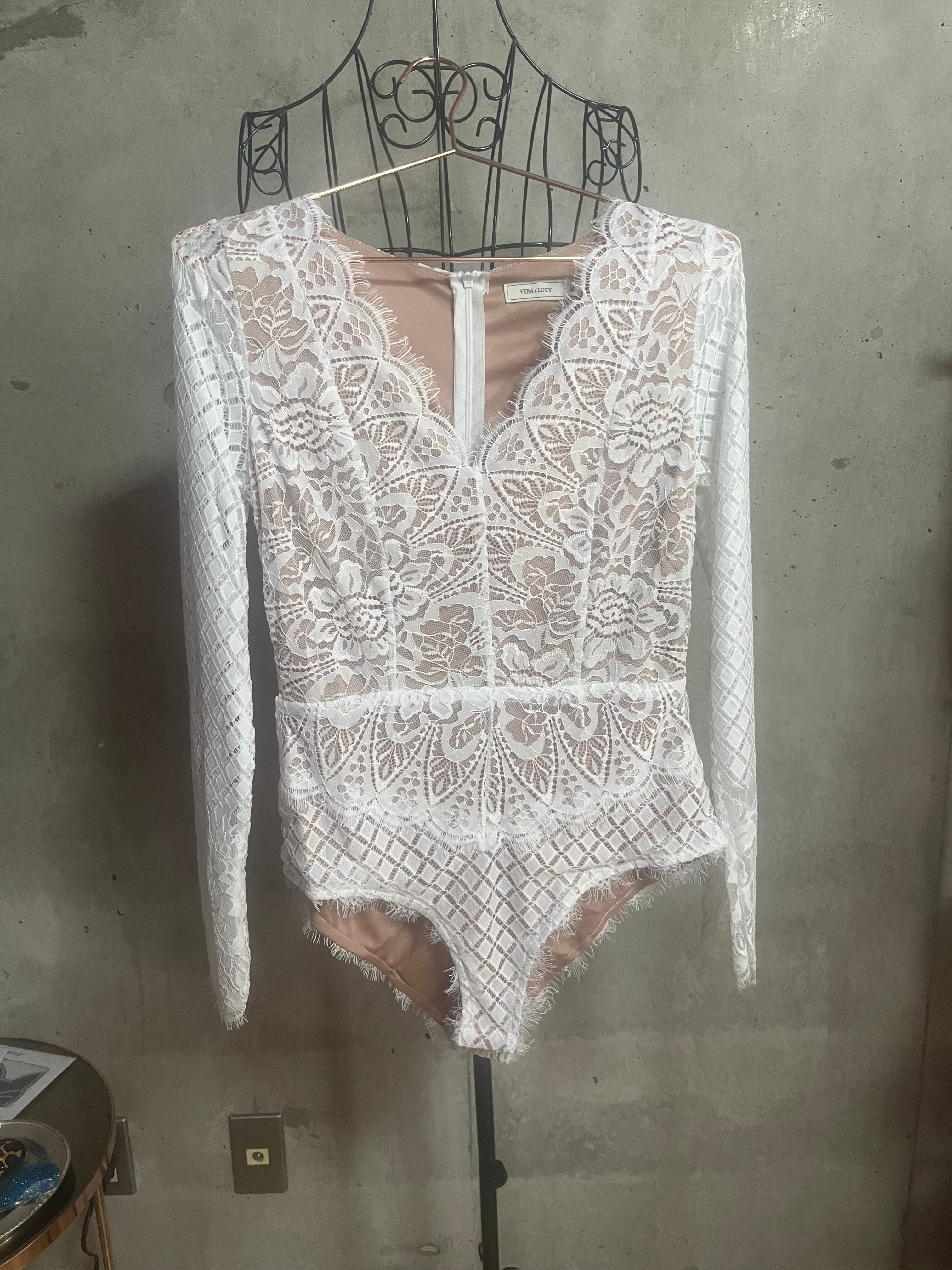 ロングスリーブ レース ボディースーツ