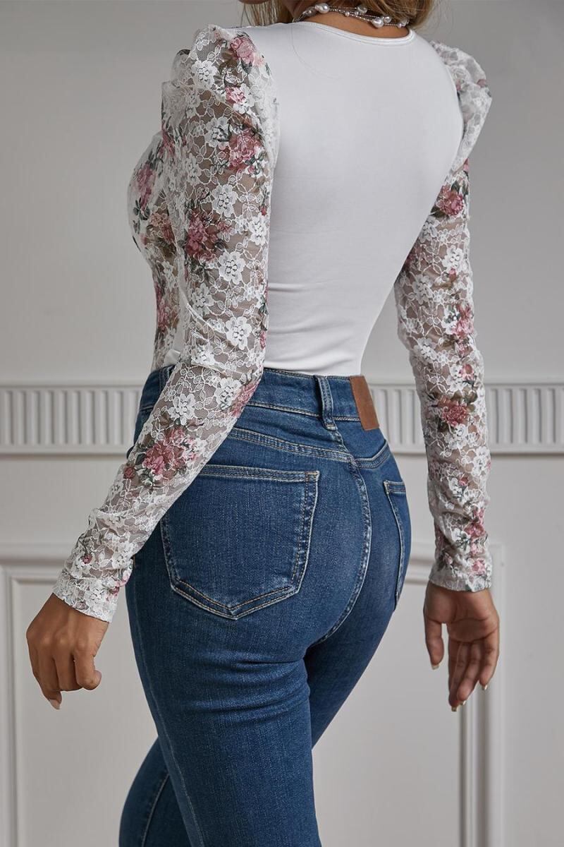 花柄レース ロングスリーブ ボディスーツ