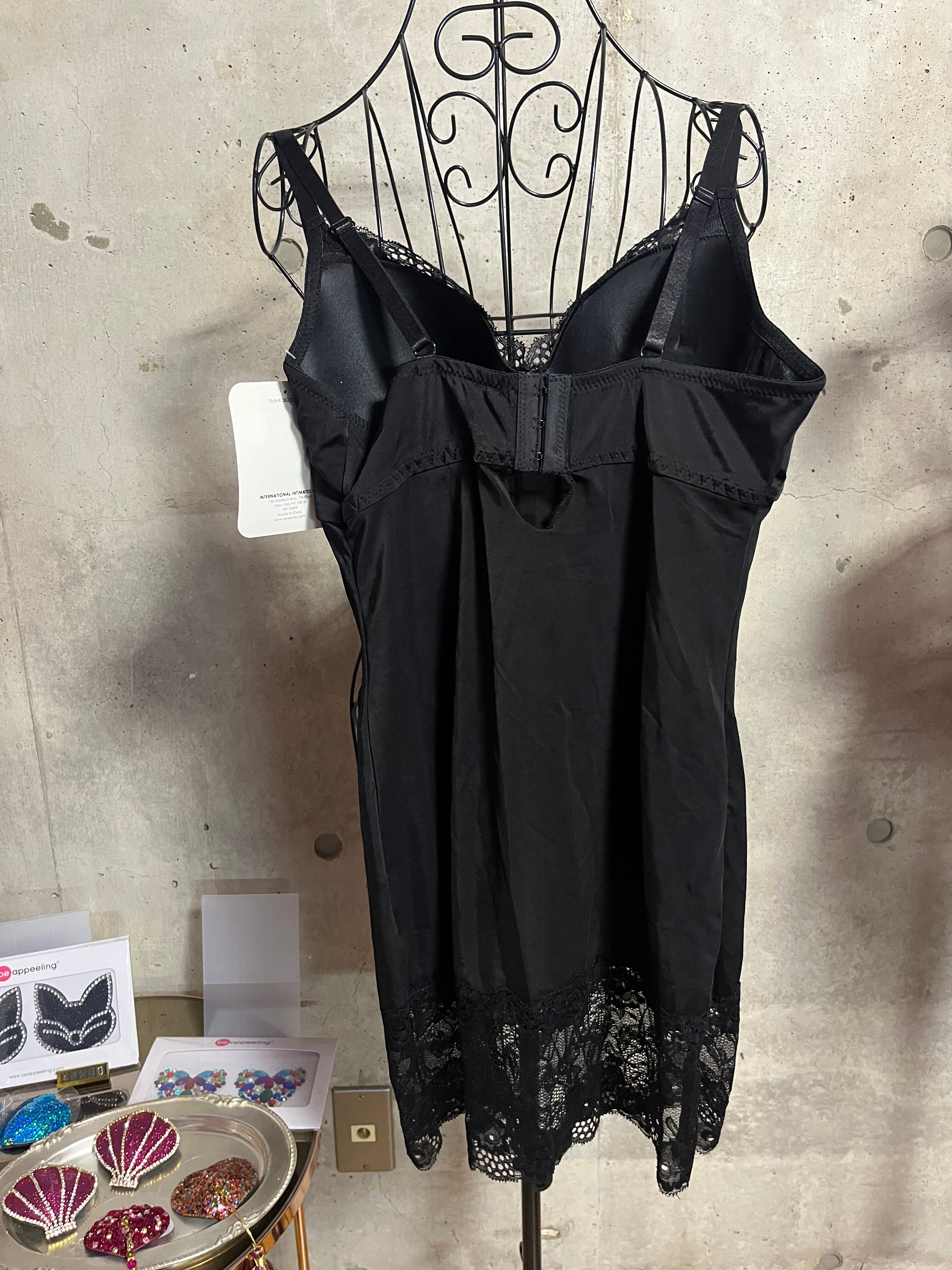 手軽に日常で着やすいワンピースタイプのインナーです。ドレスやワンピースをお召しいただく際に、下着が響かず、重宝します
