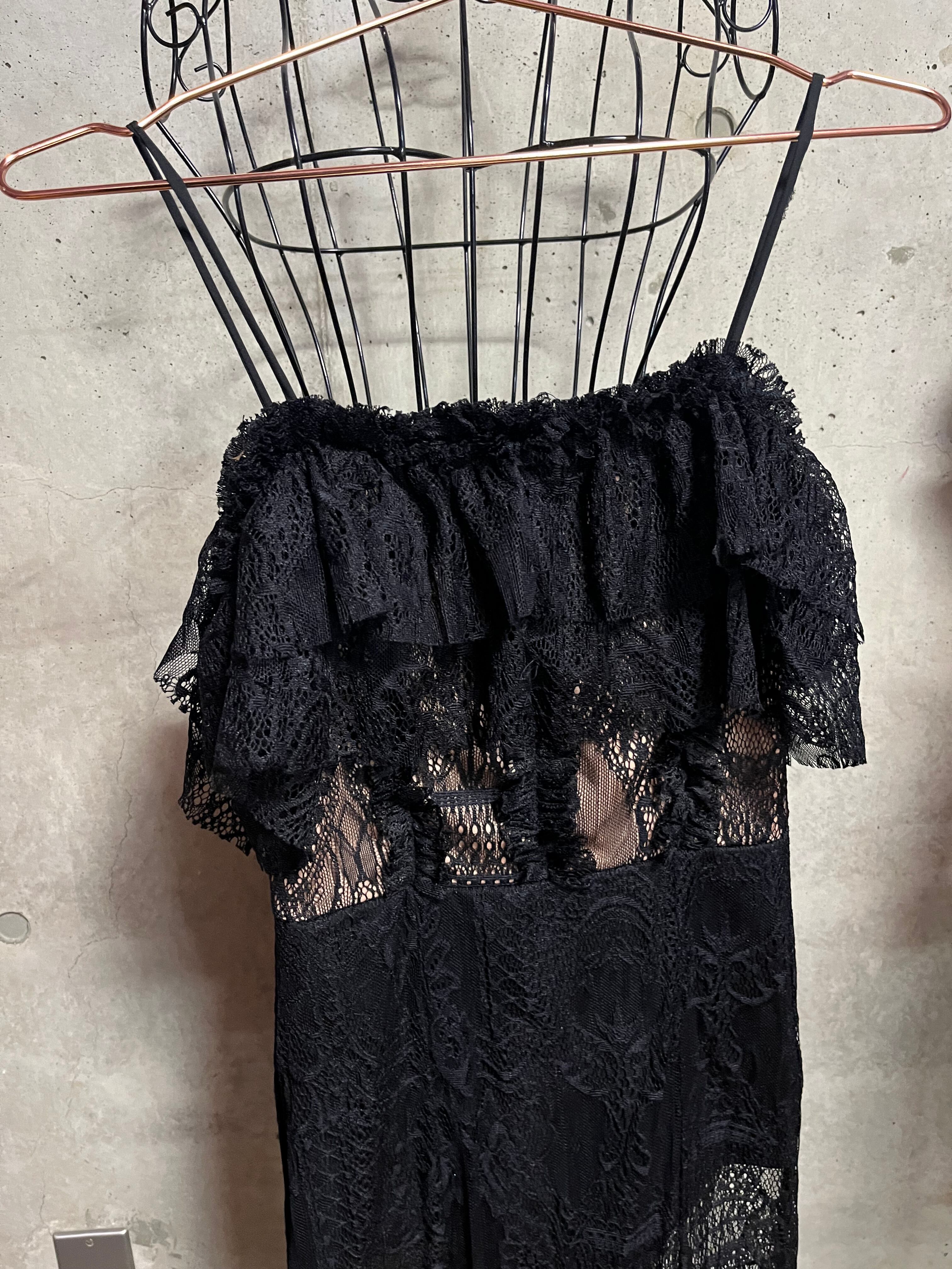 レオタードのようになっているデザインの上に、透け感のあるレースのワンピースが合わさったデザインです